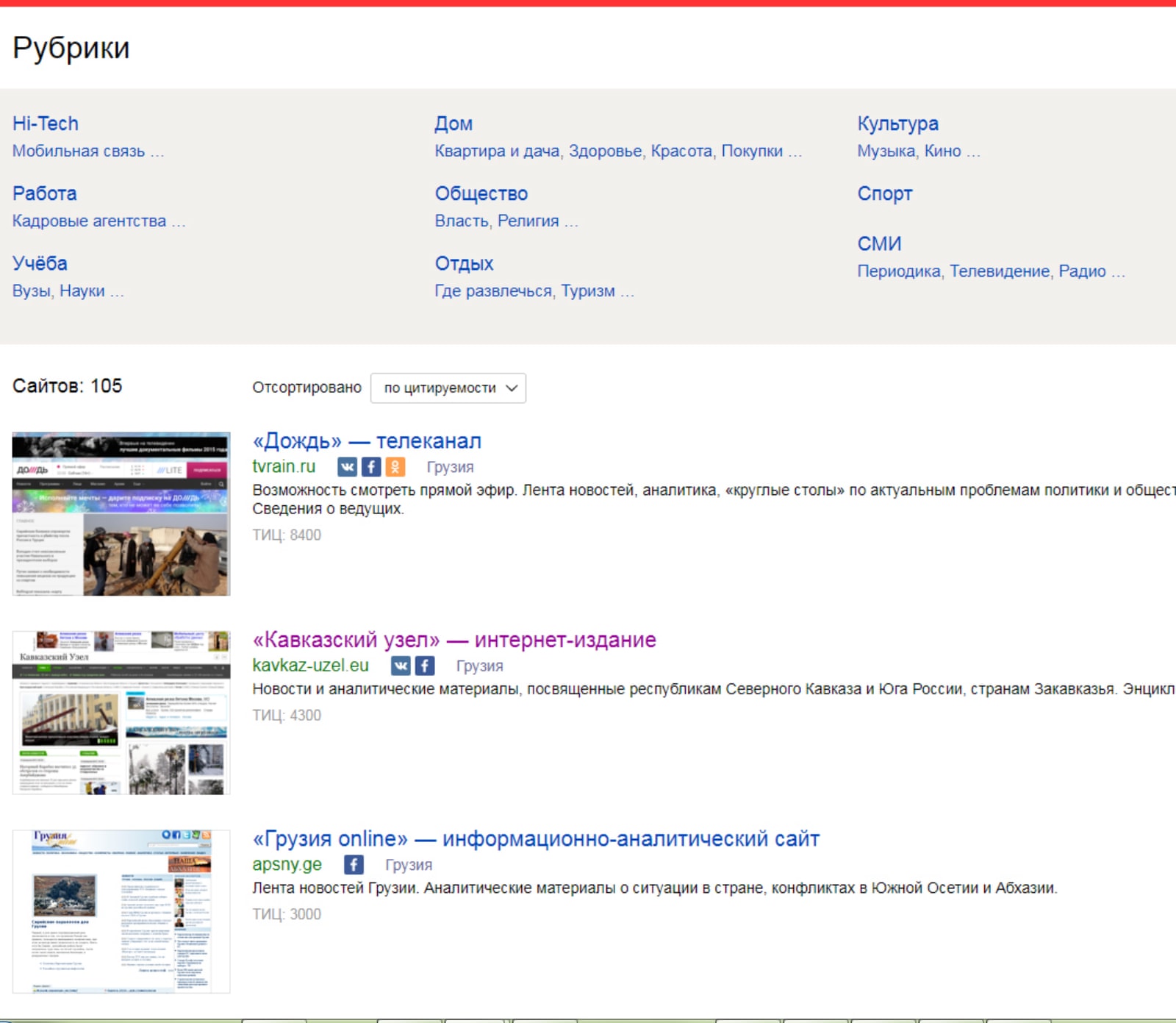 1-2 места по цитируемости на Южном Кавказе (более 75 тысяч цитат в русскоязычных СМИ).