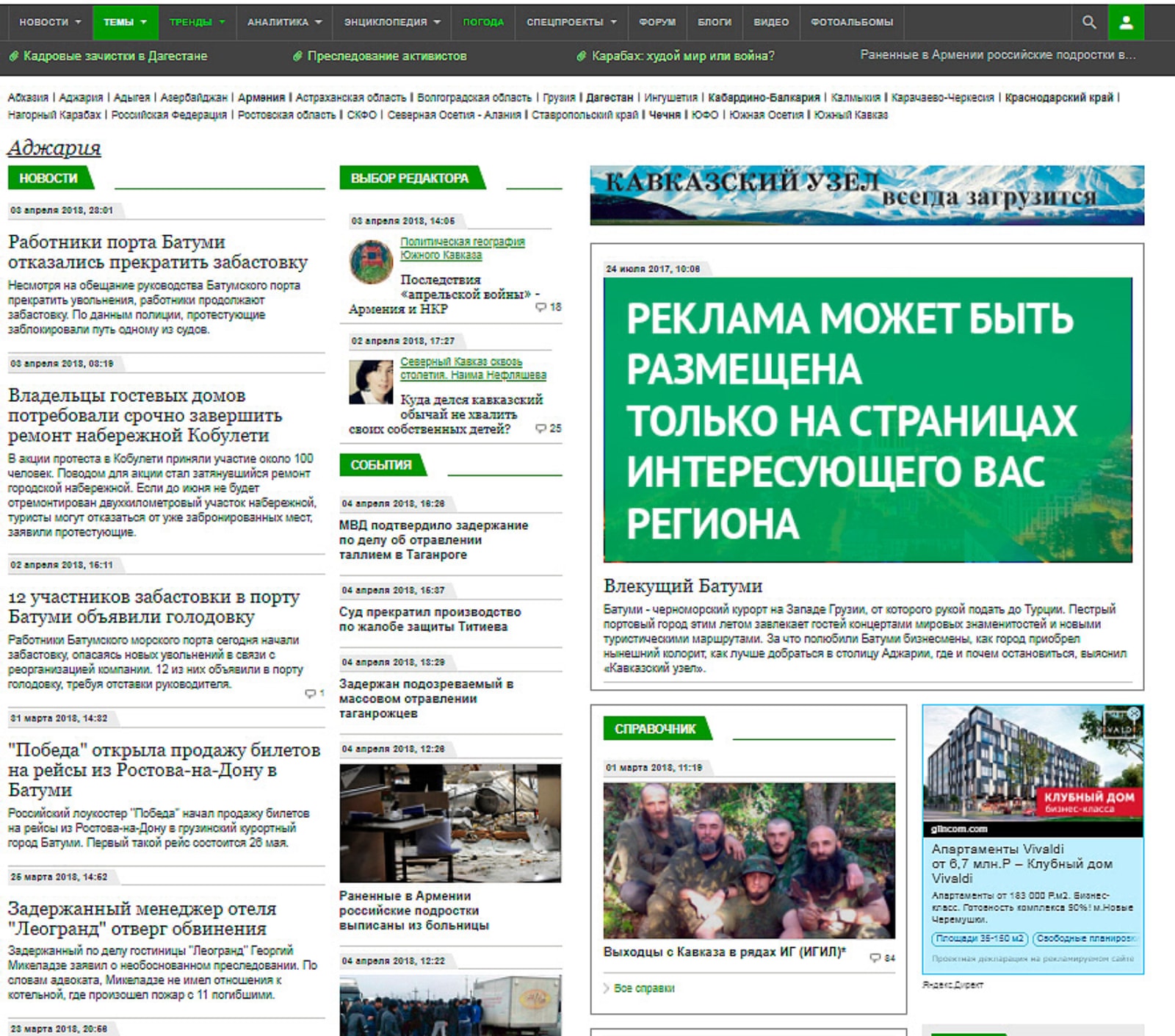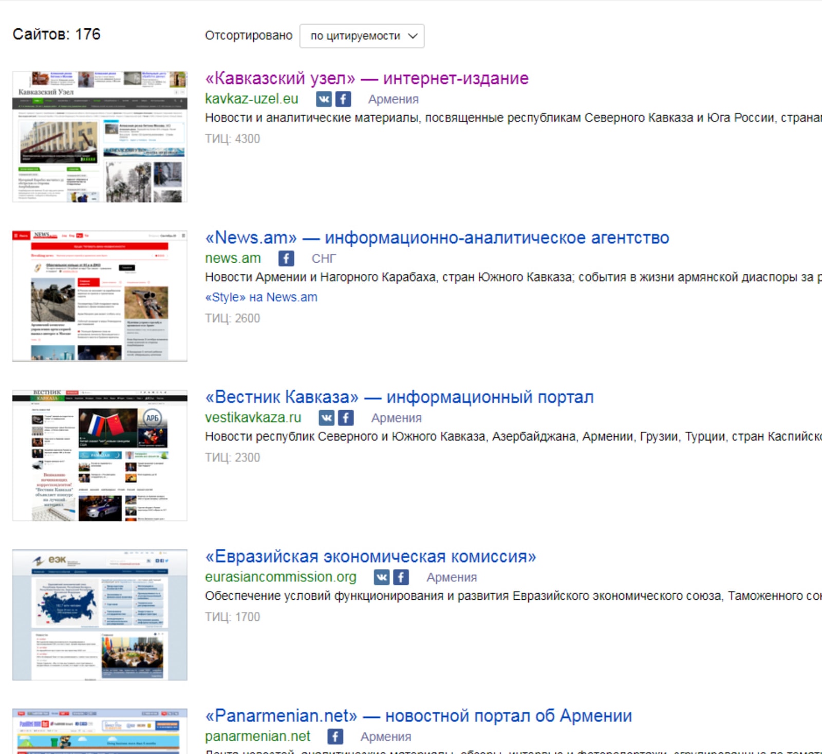 1-2 места по цитируемости на Южном Кавказе (более 75 тысяч цитат в русскоязычных СМИ).